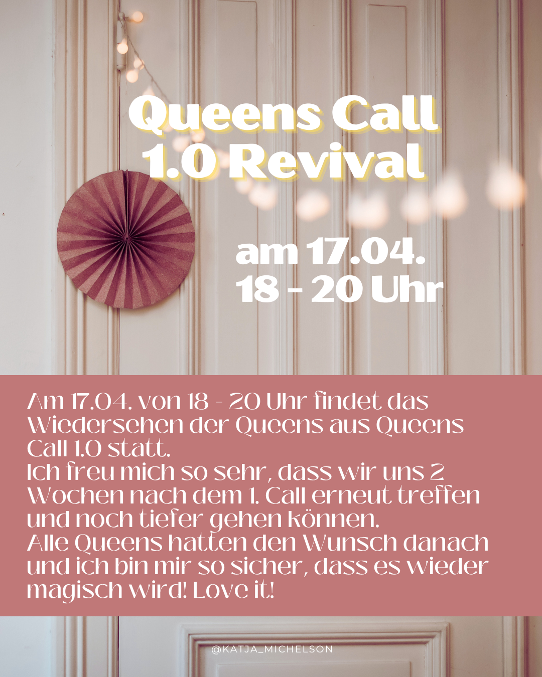 Am 17.04. von 18 – 20 Uhr findet das Wiedersehen der Queens aus Queens Call 1.0 statt.